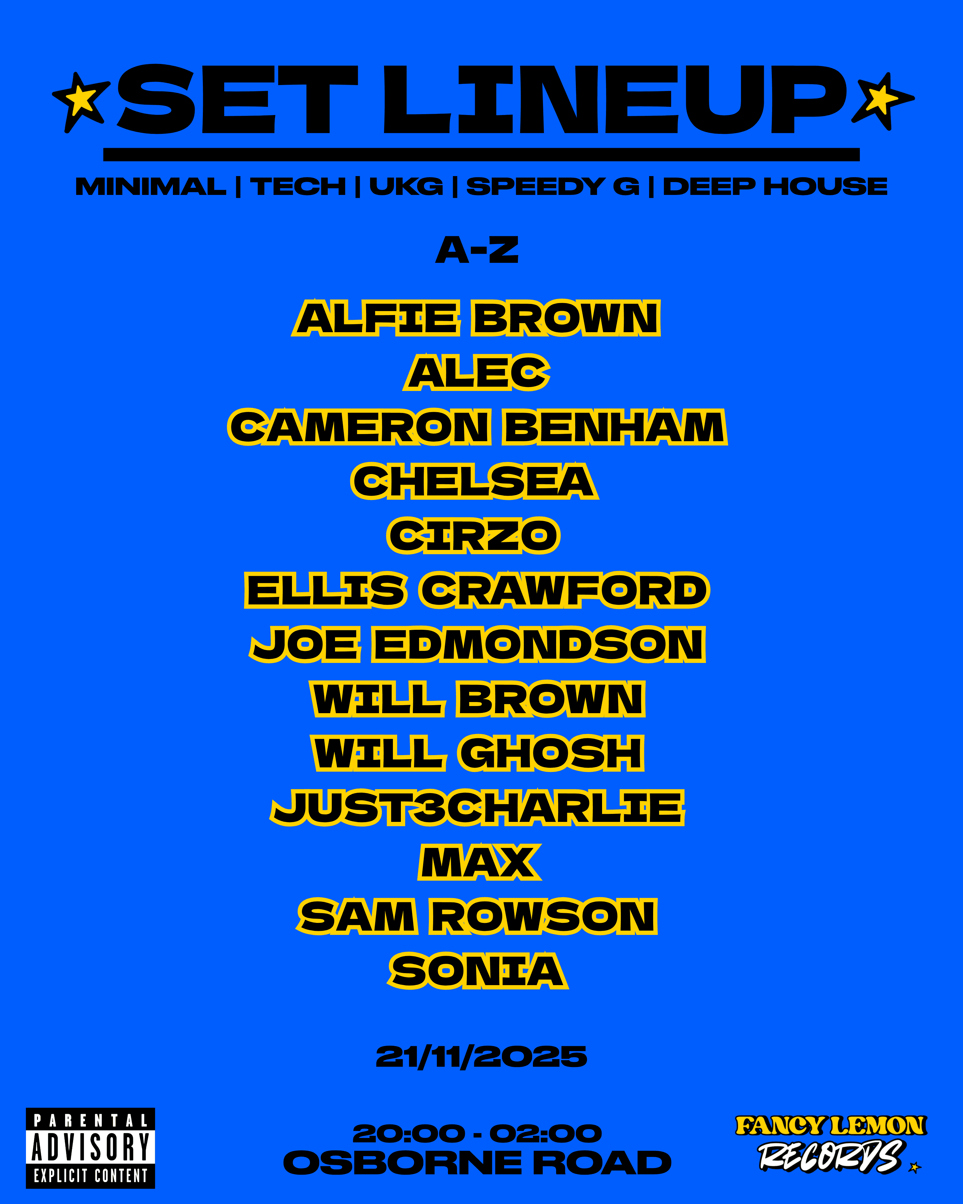 Fancy Lemon Records was born in a uni bedroom — two people with a love for music chasing a sound that actually means something. No boardrooms, no suits. Just late nights, cheap speakers, and a vision to shake up the house scene. This label’s built from the ground up, for the culture, by the people living it.